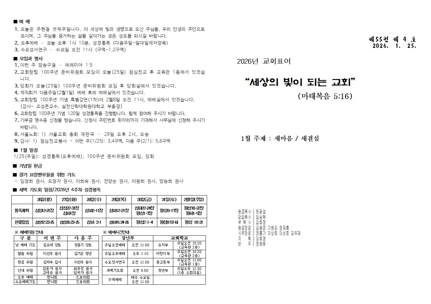 | 다음글 | 26.1.18 주현절 둘째주일/여신도회주일 | 김희정 | 2026.01.24 | 0 | 32 |