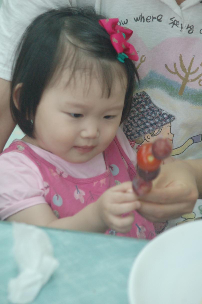과일꼬치를 만들고 있습니다 헤헤